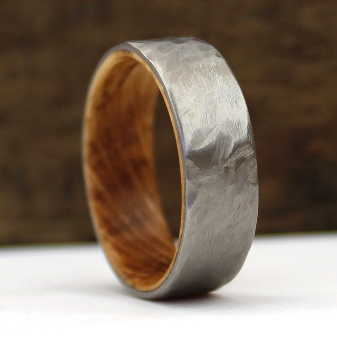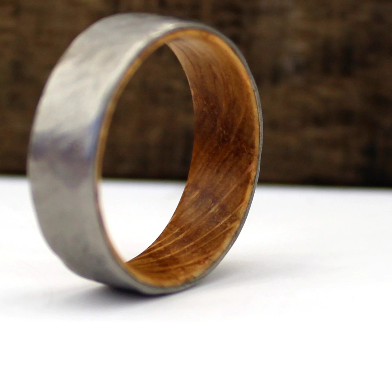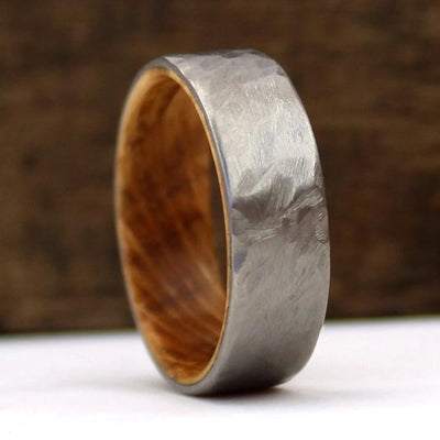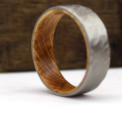 This design pairs the old with the new. Gorgeous rustic, old growth Jack Daniel's whiskey barrel is encased in hammered titanium.