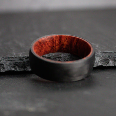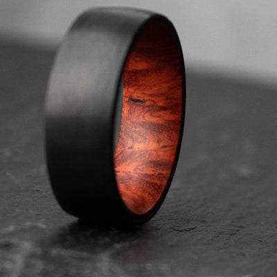 This simple, minimalist wedding ring design is paired with aeronautical grade, black Carbon Fiber.