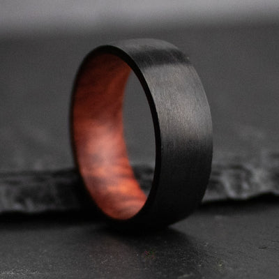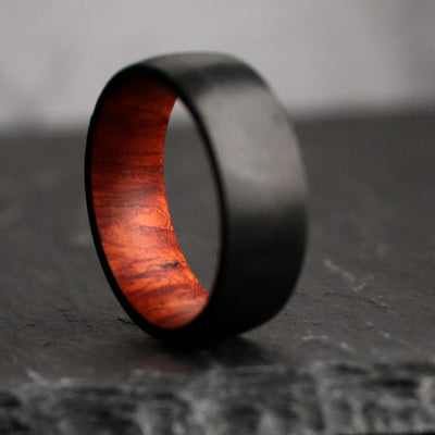 This simple, minimalist wedding ring design is paired with aeronautical grade, black Carbon Fiber.